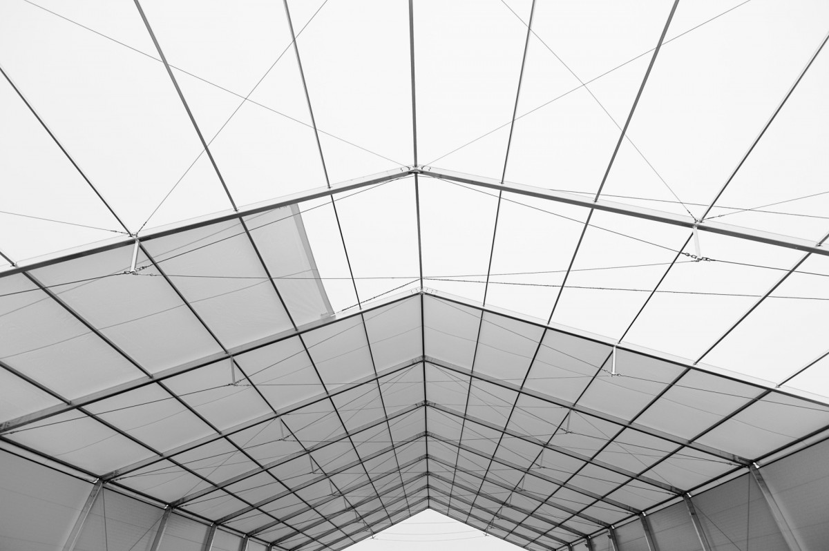Lehký a odolný materiál, který zaručuje ochranu proti dešti a větru. Speciální struktura materiálů propouští denní světlo dovnitř haly.
